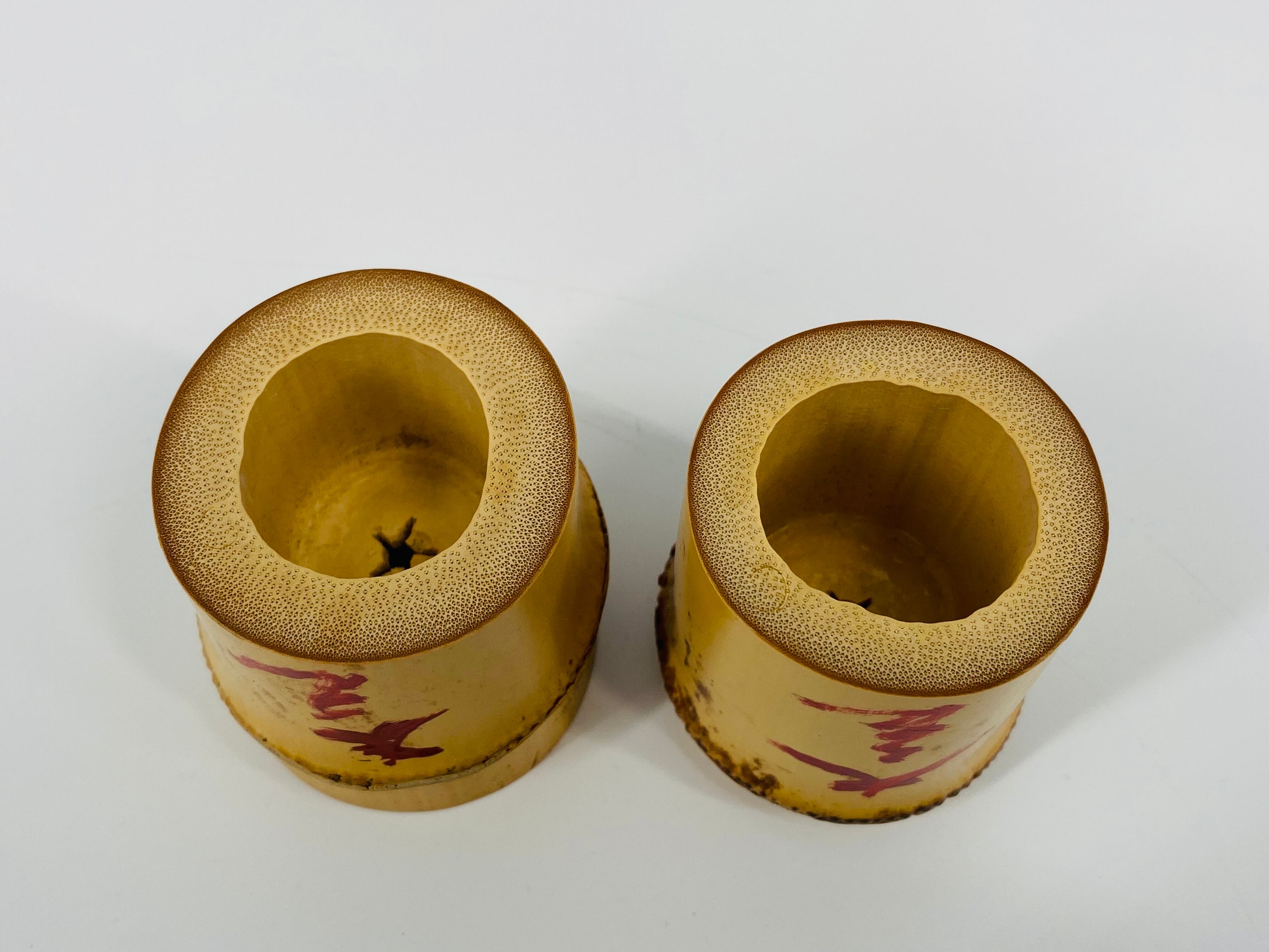 立花大亀 書付 竹蓋置 一双 稲尾誠中斎 下削り 茶道具